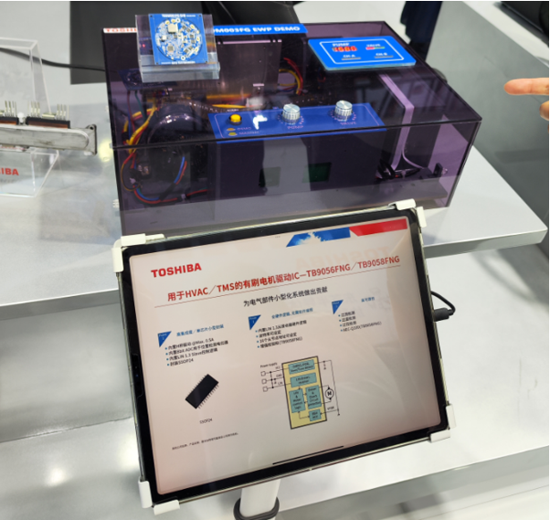 另一方面,隨著汽車發(fā)動機(jī)熱管理和照明系統(tǒng)智能化需求的提升,電子水泵和智能LED大燈的應(yīng)用日益普及。東芝針對這些應(yīng)用提供了高效的解決方案。例如,東芝展示了采用其SmartMCD™及低壓MOS的電子水泵整體解決方案。