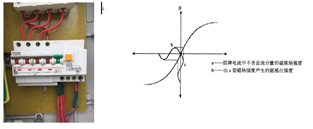可以看到,如果交流負載發(fā)生絕緣損壞,產(chǎn)生的剩余電流不僅有交流成分,還有直流成分,如果按照慣性思維依然使用AC型漏電保護器在交流負載端進行漏電保護顯然是不行的,不僅無法檢測直流漏電,甚至疊加的直流漏電會導致檢測磁芯預先磁化,導致脫扣值增大,破壞剩余電流保護器的原有的保護功能!
