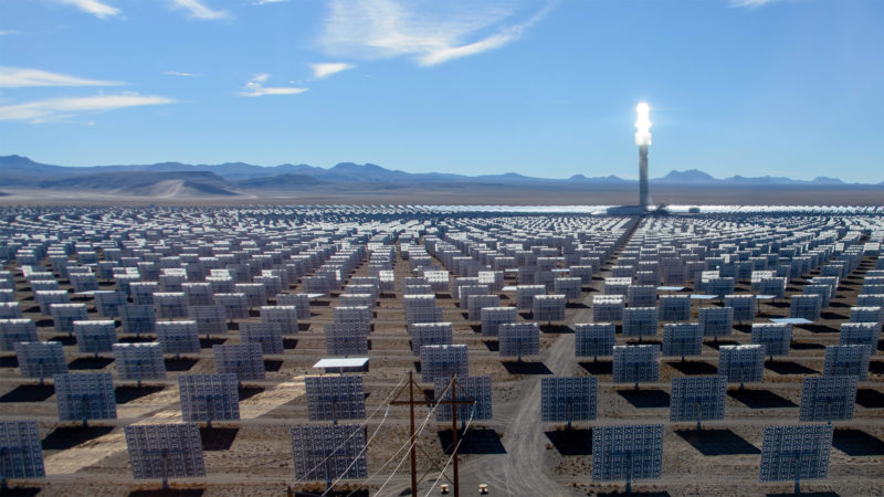 該場域?qū)仢M12,000面鏡子,利用鏡子聚集太陽光至中央220米的高塔,其內(nèi)部熔鹽(moltensalt)將加熱到攝氏565度,并利用熱交換器(heatexchanger)將熱能轉(zhuǎn)移至水中產(chǎn)生蒸氣,可用于蓄熱或是用蒸氣來驅(qū)動發(fā)電機。