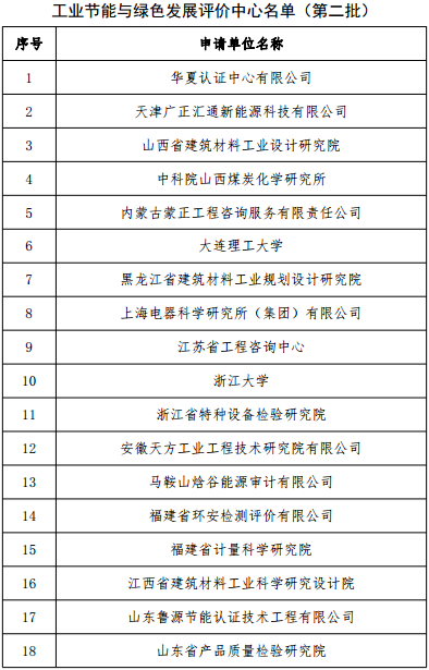 附件:工業(yè)節(jié)能與綠色發(fā)展評(píng)價(jià)中心名單(第二批)
