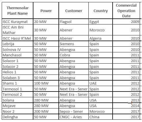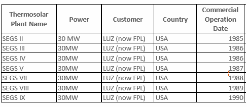 早在20世紀80年代初,首諾便為Luz公司在美國加利福尼亞州Mojave沙漠相繼建成的9座槽式太陽能熱發電電站SEGSI~SEGSIX提供導熱油,SEGSI系列電站總裝機容量達35.38萬千瓦,為全球最早一批商業化光熱發電項目。此后,Therminol®VP-1被全球二十多家商業化槽式太陽能熱發電電站廣泛采用,首諾導熱油覆蓋的商業化槽式太陽能熱發電電站總裝機容量達1.4GW。