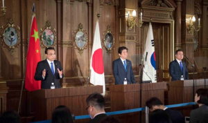 當地時間5月9日上午,國務院總理李克強在東京迎賓館與日本首相安倍晉三、韓國總統文在寅在第七次中日韓領導人會議結束后共同會見記者。新華社記者 李濤 攝人民網東京5月9日電...